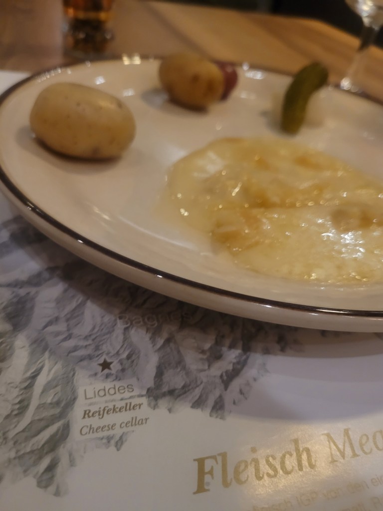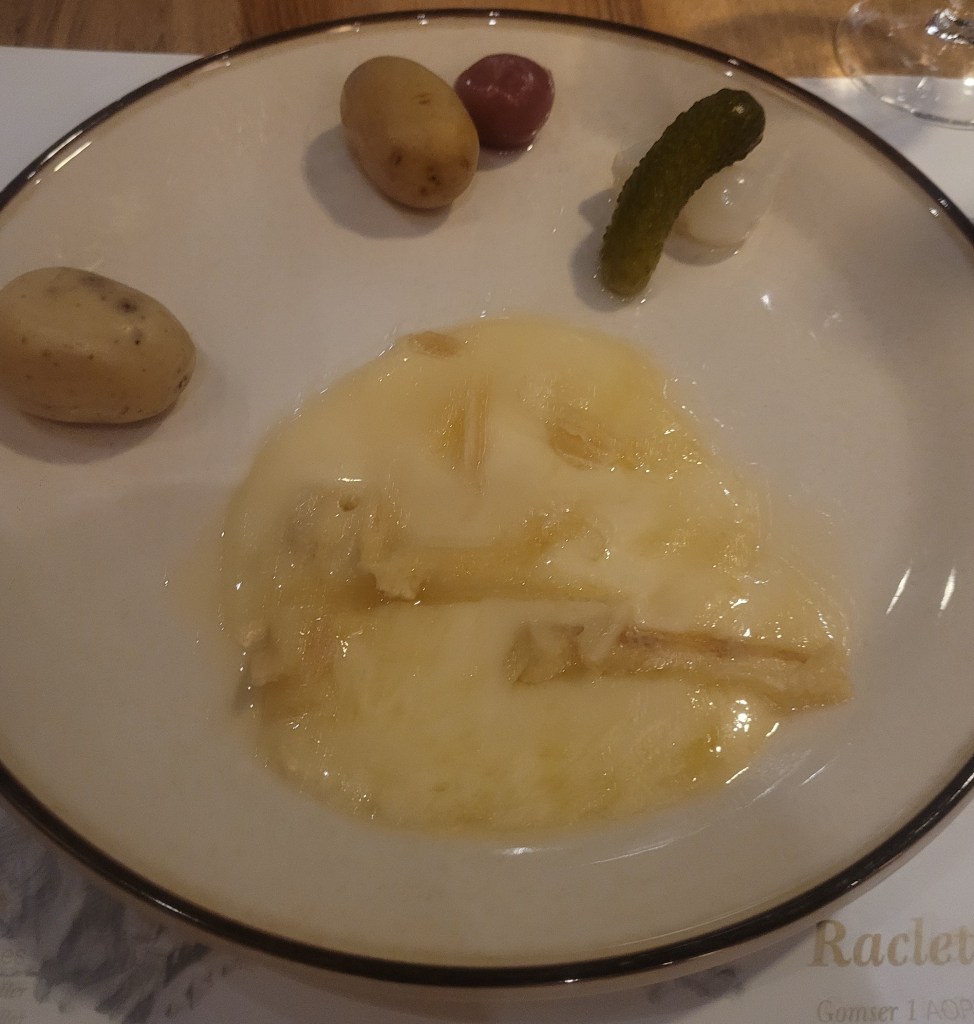 Be forewarned; it’s going to cost you likely $30/ meal *minimum* virtually anywhere in Switzerland. I went to Zurich, Geneva, Zermatt, and Oeschinensee. A The lattes are $6/ latte on the cheap end (average of $8 for a 16oz latte). I was not warned ahead of time- Switzerland isn’t cheap. However when I was in Geneva, I was made a Teddy Bear Latte (See photos below), which was the single most adorable latte I’ve ever had in my life. Now about the raclette; (If you’ve never had raclette, it’s traditionally a half-cheese wheel, and the top gets broiled so the uppermost layer of cheese melts and is then scraped off and served as a pile of gooey golden bubbling melted cheese with pickled onions, pickles, and potatoes on the side. It’s delicious liquid gold with pickles (See photos below). Did I mention there are pickles? I found the raclette to only be $12-$13 max for a plate, even for the really fancy regional ones. This post was written in 2023, so if you go in a few years, I can’t guarantee that price won’t change. The other amazing bit about Switzerland is (obviously) the Swiss Chocolates. When I was in Zurich, I went to a place called Confiserie Sprungli for a box of delicious Swiss chocolate. They’re also not cheap, but they’re not completely outrageous as far as chocolate goes, either. I think I wound up paying about $14 for a box of six and eating them in the sun next to the many swans of Lake Zurich.